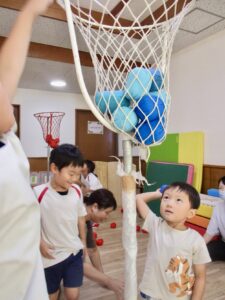 9月に入りプールが終わりこれから運動会の練習も始まるため、ニコたまで玉入れ大会をしました!