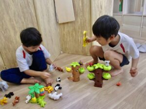 どうぶつのブロックで遊んでいます!