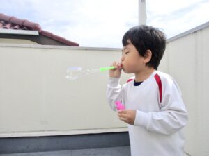 ふーっと吹くことで大きなシャボン玉🫧ができました〜🥰