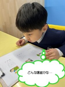 自立課題(一人でやりきる課題)の場面で、文章を構成するプリント課題に挑戦📝✨