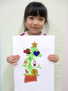 ニコたまではみんなで絵の具で描いたり折り紙を折ったり、シールを貼ったりしてかわいいツリーを作りました🌲