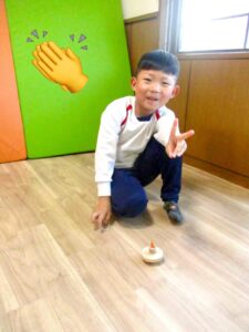 紐を引いたり、手で回したり色々なコマを回しました!✨