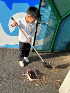 玄関付近にたくさん落ち葉があったので、お手伝いをしてもらいました😄