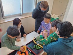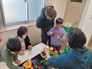 野菜についての紙芝居を見たり、実際に野菜を触る経験をさせてもらったりしました!