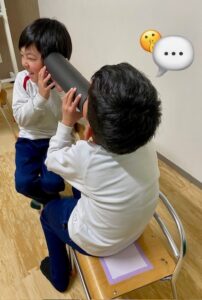 周りのお友だちに聞こえないようにヒソヒソ声で言葉を伝えて、、、🤫