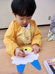 クレヨンで描いたり、びりびり折り紙を破って貼ったりしました☺️✨