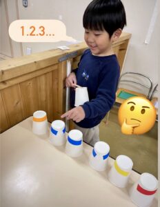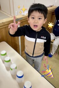 持ち手の付いた紙コップを使って、紙コップあつめをしています!💪🏻🔥