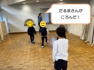 ピタっと止まる動きの練習をしたら、今度はみんなでだるまさんがころんだをしました😊